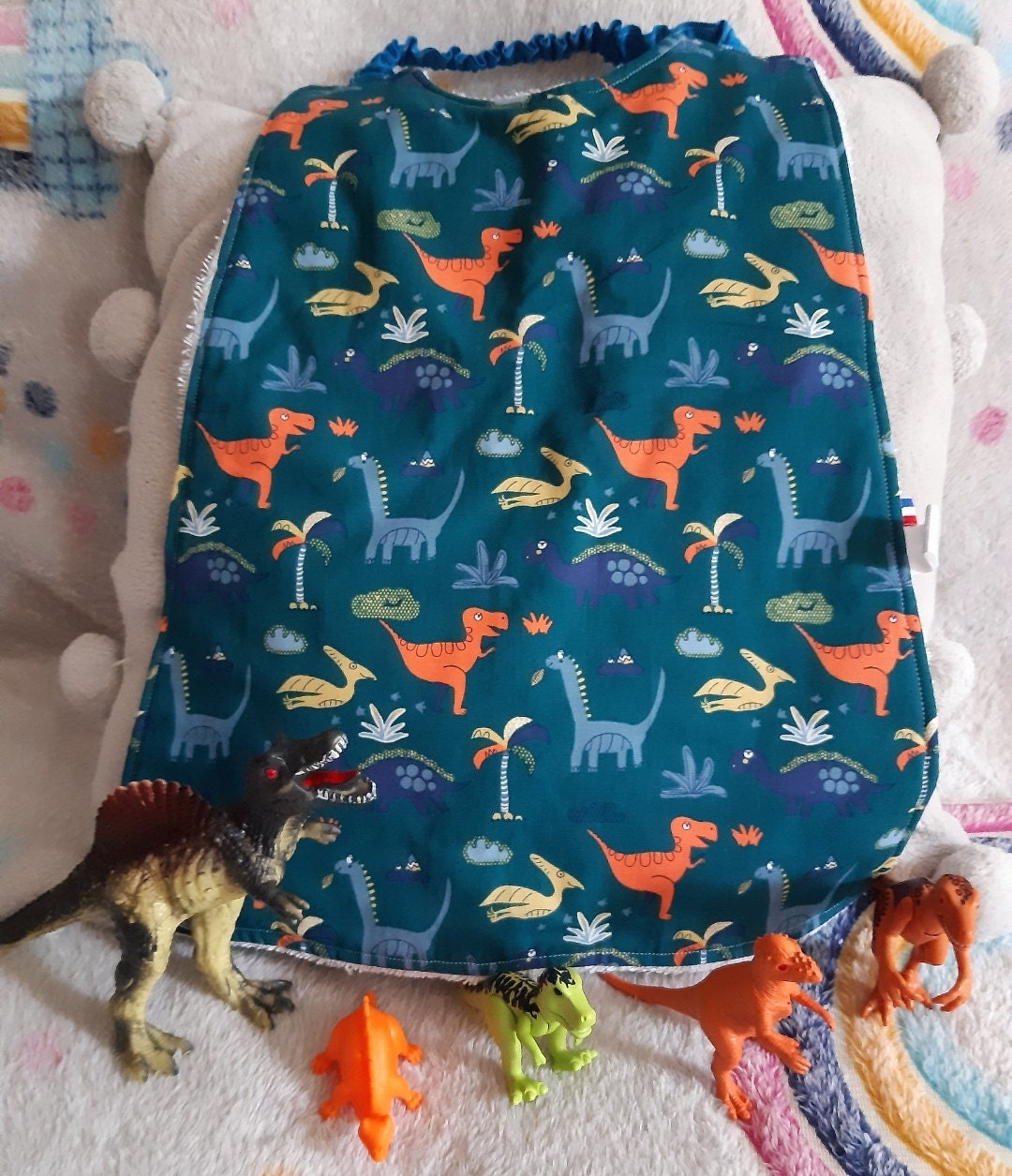 Serviette élastiquée de table pour maternelle, garderie, bavoir facile à enfiler pour cantine, nounou, dinosaures