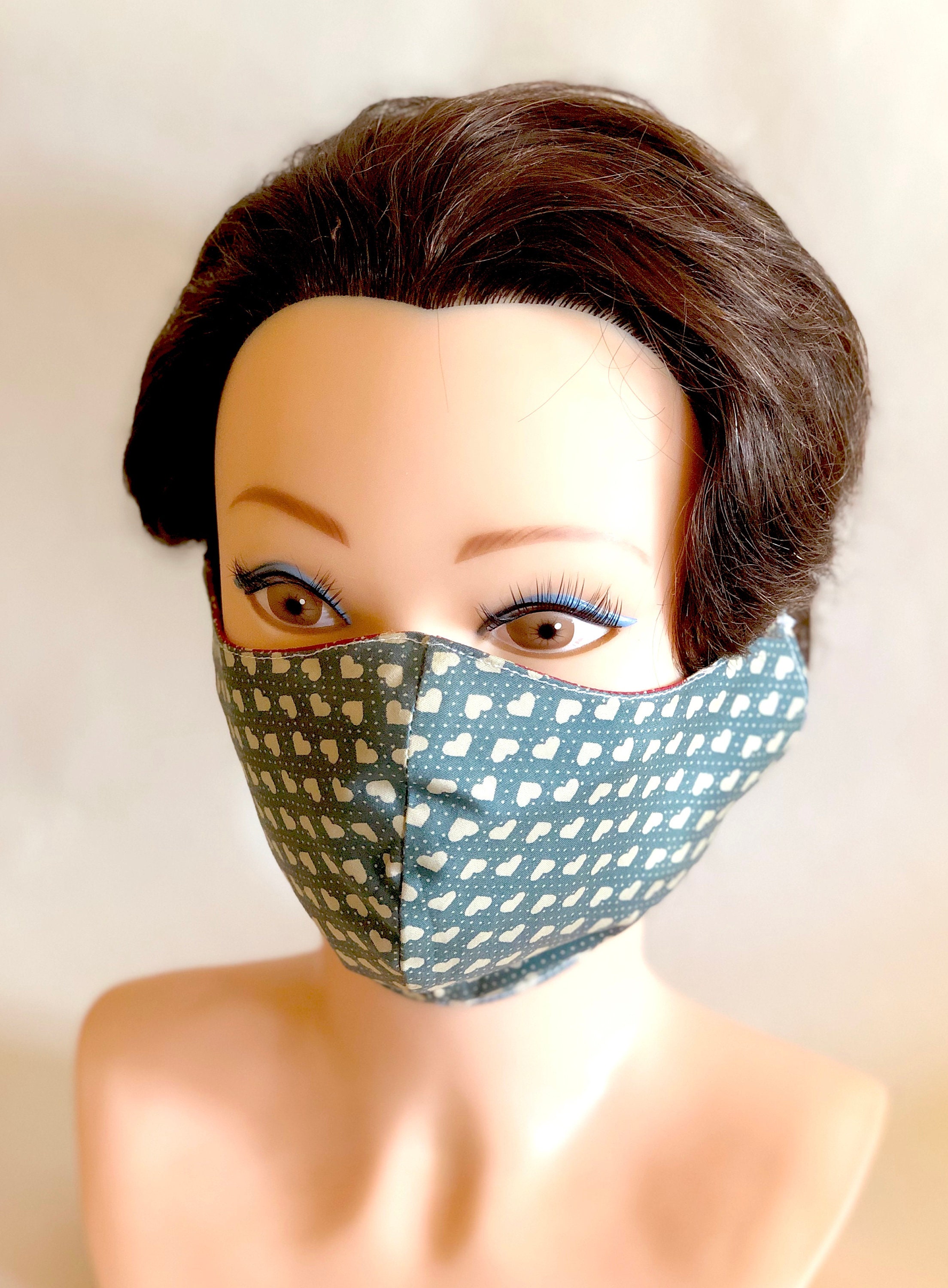Washable, Reversible Cotton Face Mask / Chemo Mask / Flu Mask / Germ Free Mask / Allergy Mask, Hearts