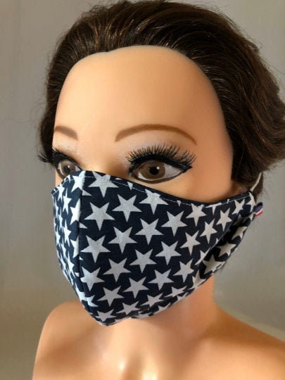 Washable, Reversible Cotton Face Mask Blue/Stars