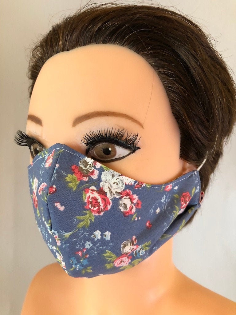Washable, Reversible Cotton Face Mask / Chemo Mask / Flu Mask / Germ Free Mask / Allergy Mask / Blue/red flowers
