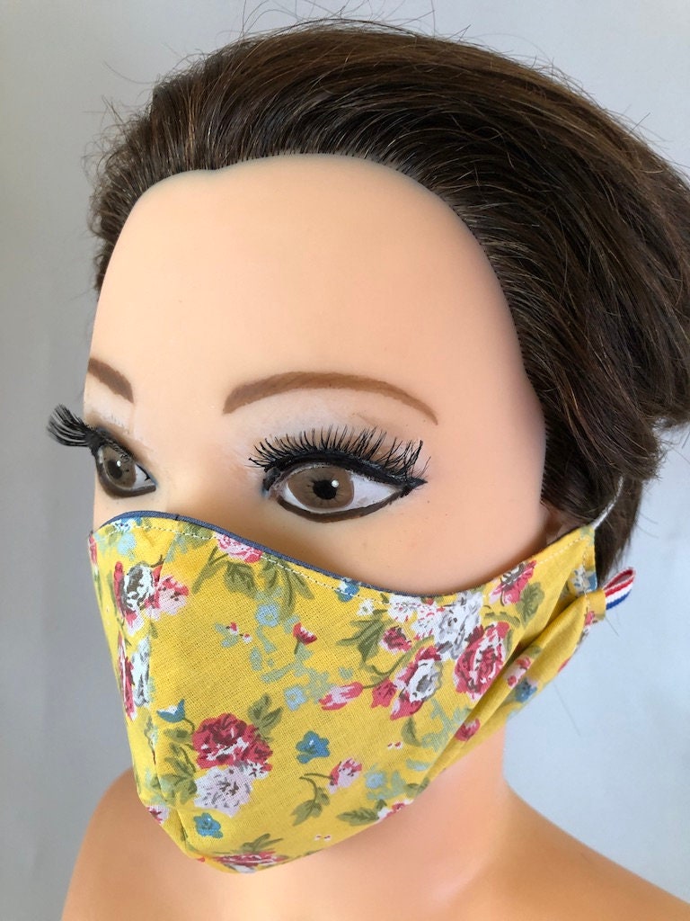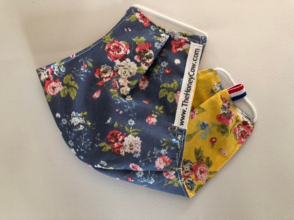 Washable, Reversible Cotton Face Mask / Chemo Mask / Flu Mask / Germ Free Mask / Allergy Mask / Blue/yellow flowers