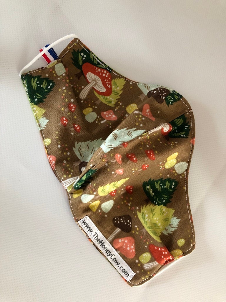 Washable, Reversible Cotton Face Mask / Chemo Mask / Flu Mask / Germ Free Mask / Allergy Mask / Browns Mushrooms